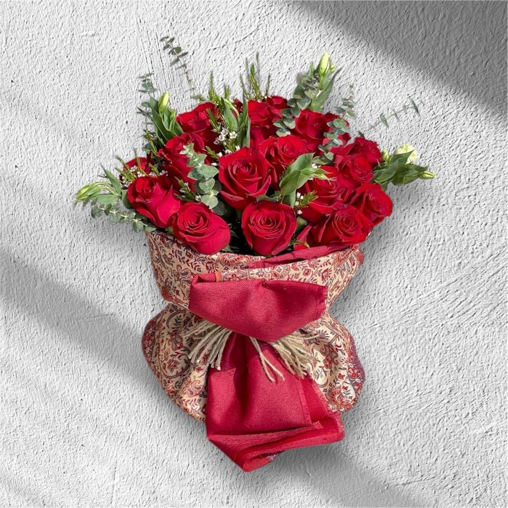 باقة ورد فاخر بتغليف ملكي 12 وردة