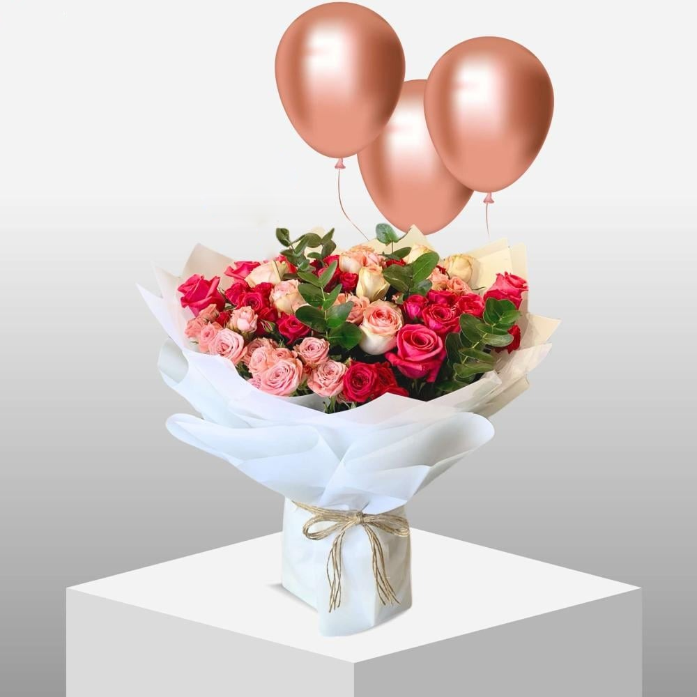 باقة الرقي ورد مشكل ولمسة أوكالبتوس
