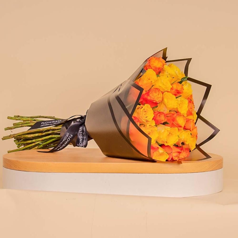 باقة ورد برتقالية وصفراء 30 وردة