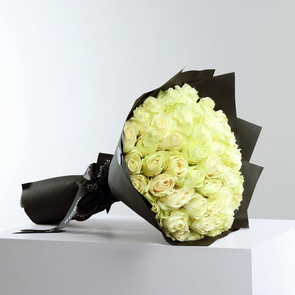 باقة الأبيض والأسود تأتيك بـ50 وردة بيضاء تفيض بالهدوء والجمال، وتُغلف بأسلوب فني راقٍ بورق أسود أنيق، ليُجسد التوازن بين البساطة والرُقي.
