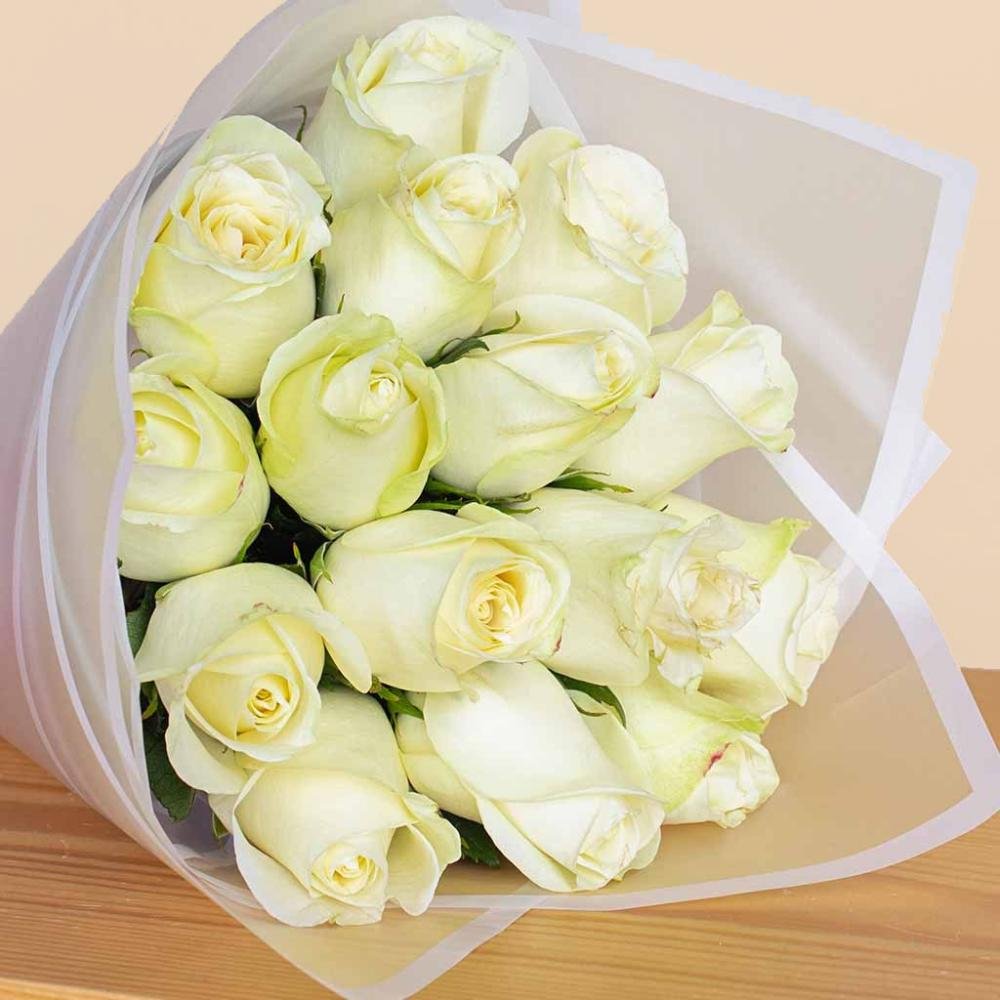 تتكوّن هذه الباقة من 15 وردة بيضاء طبيعية بأناقة فائقة، مغلفة بتنسيق هادئ وبسيط يُضفي لمسة من الصفاء والوقار.